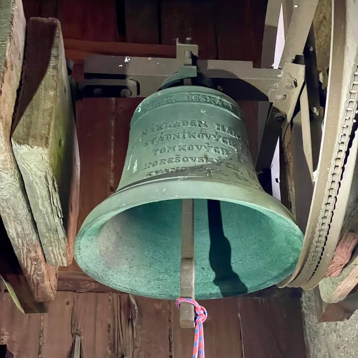🔔 Ve věži hostivického kostela jsou dnes dva zvony — sv. Václav a umíráček. Ale místo je tu na čtyři zvony! 4️⃣