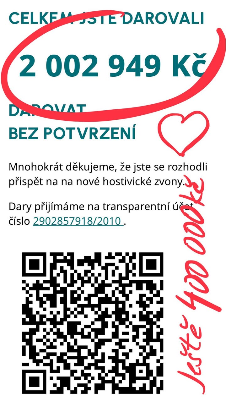 🔔🔔 Veliké poděkování všem dárcům, kteří přispěli na obnovu hostivických zvonů — za 7 měsíců od vyhlášení sbírky se vybralo krásných 376 124 Kč. Když k tomu připočt...