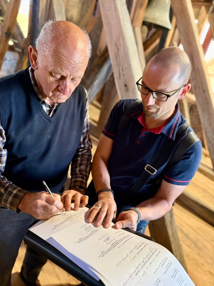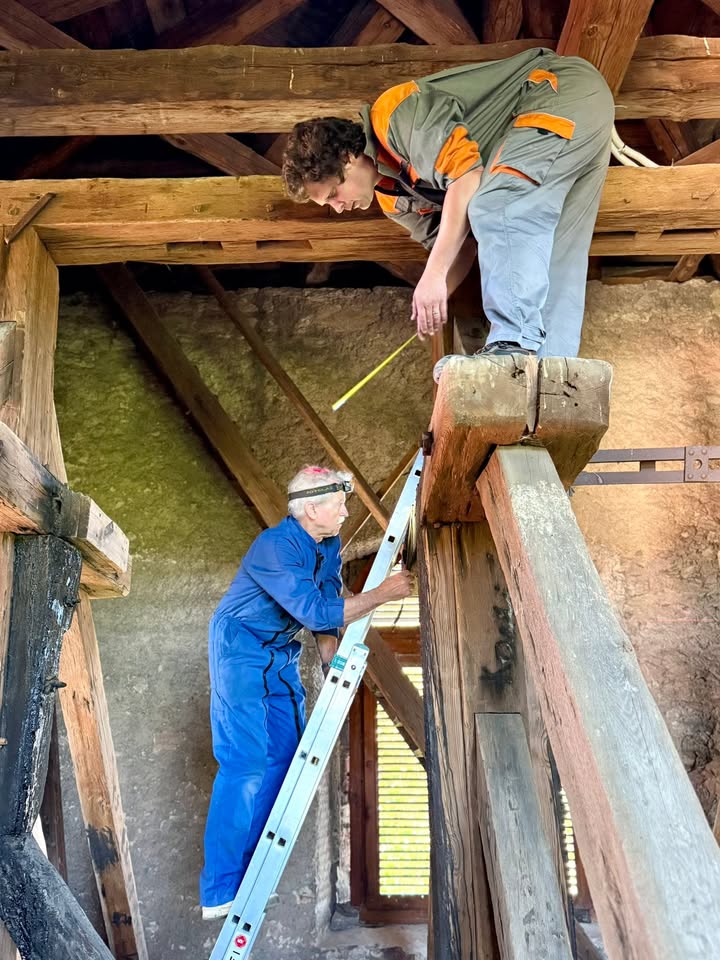 🔜🔔 Termín svěcení zvonů se blíží, pan Manoušek si přijel přesně zaměřit opravenou zvonovou stolici, aby mohl v dílně vyrobit všechny potřebné díly k uchycení zvonů a jejich motorů.
