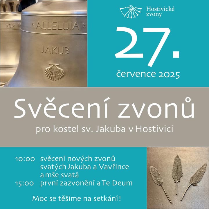 Ještě jednou a úplně oficiálně — SRDEČNĚ VŠECHNY ZVEME NA SLAVNOST SVĚCENÍ NOVÝCH ZVONŮ 🔔🔔 pro hostivický kostel svateho Jakuba 27. července 2025 🔜