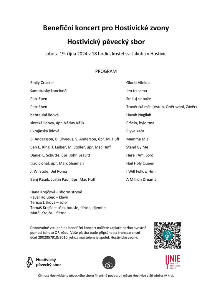🎶🔔🎶 Už zítra, v sobotu 19. října od 18:00, v kostele sv. Jakuba na hostivickém náměstí 🎼🎤 Můžete se těšit na krásné skladby v podání našich Pěnic 💛 Vstupné je dobrovolné a výtěžek koncertu půjde na nákup dvou nových 🔔🔔