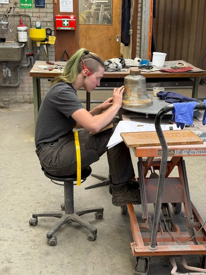 🔔🔔 Ještě před litím nás pan Manoušek protáhl zvonárnou. Viděli jsme abecedu a záložní voskové odlitky našich zvonů, proces ladění zvonu pro zvonohru, zdobení zvonů i zvony připravené k opravám nebo k expedici. Hlavně jsme viděli, kolik práce je za každým vyrobeným zvonem 🔔