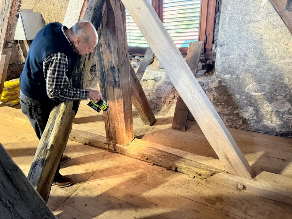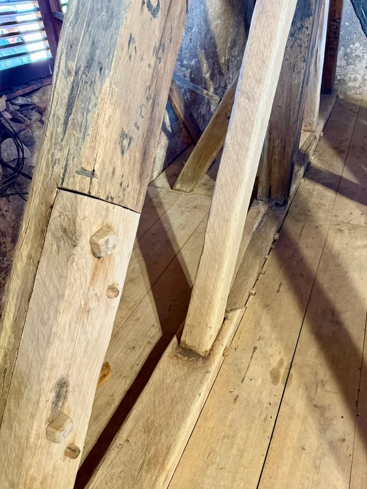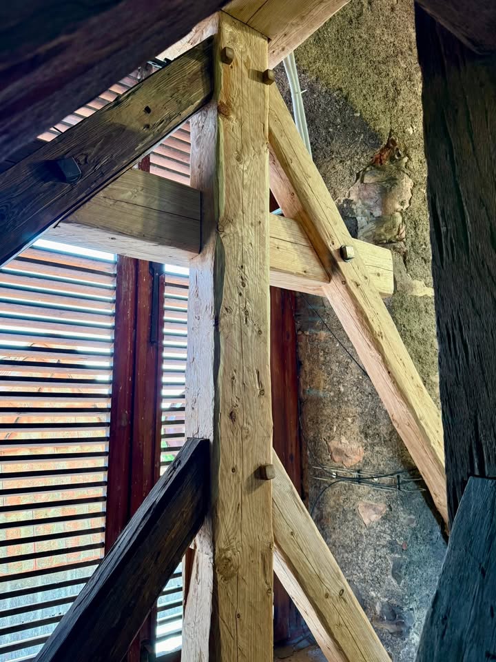 🪚🪓 Přitom se museli popasovat s mnohem horším stavem spojů — dřevo bylo tvrdé, pěkně znělo, přesto se po rozebrání ukázalo, že čepy i dlaby jsou rozpadlé. Prvků, které se proto musely vyměnit bylo téměř dvojnásobek oproti původnímu předpokladu. A stálo nás to o 💶 110 tisíc korun víc 😬 Pro bezpečnost celé zvonové stolice to ale bylo nutné.
